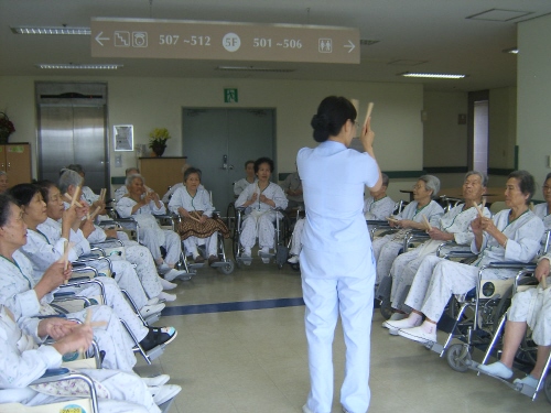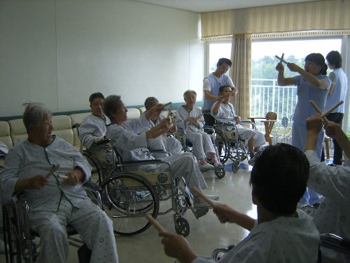 음악요법 시간에 리듬막대 연주 해 보는 시간을 가졌습니다.