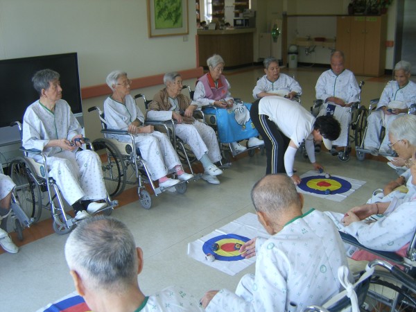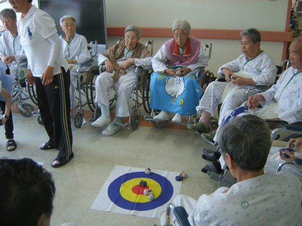 탁구 선생님께서 오늘은 탁구뿐만이 아니라 어르신들이 좋아하시는 오재미 표적맞추기 레크레이션을 진행해 주셨습니다.