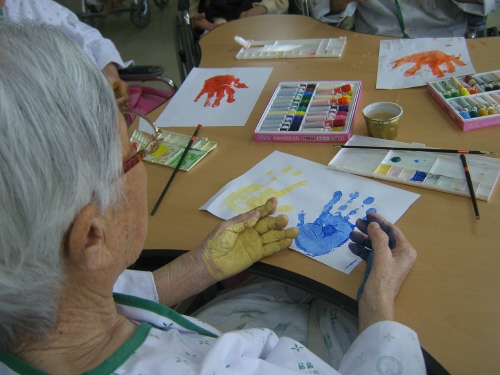 미술요법 시간으로 자신의 손을 이용하여 자유롭게 표현해보는 시간입니다.