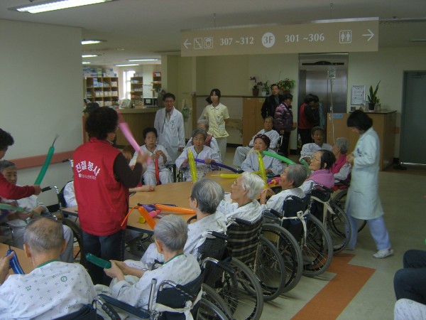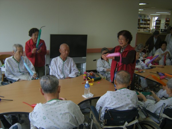 다정다감하게 풍선을 가르켜 주는 봉사자님들 때문인지 어르신들이 무척 좋아 하시는 시간 입니다.