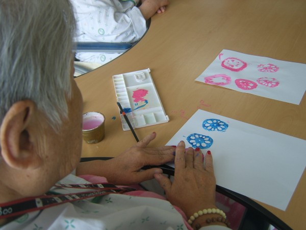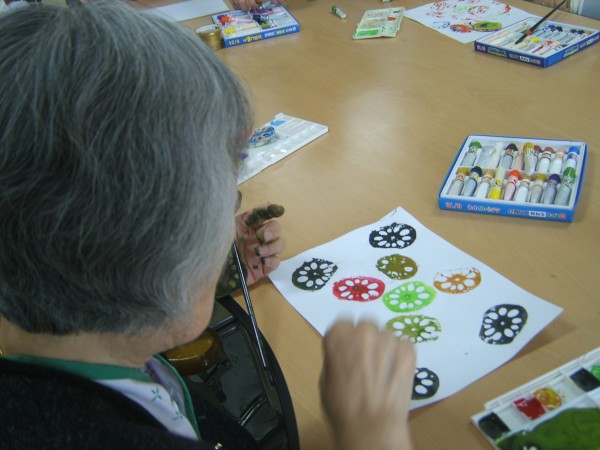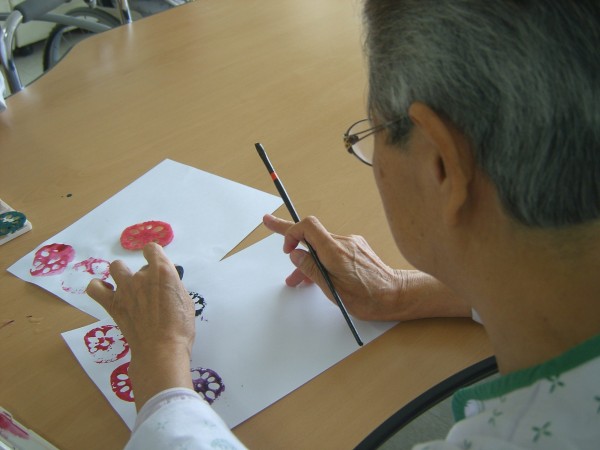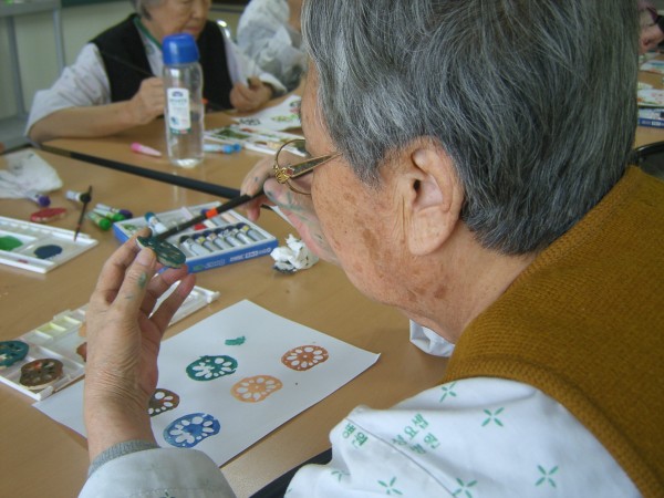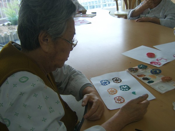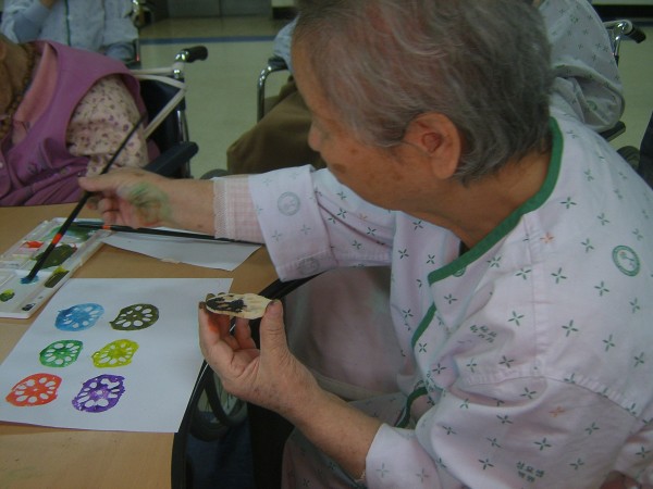 사회복지프로그램 | 미술요법(연근 무늬 찍기)