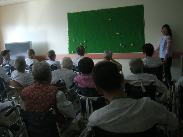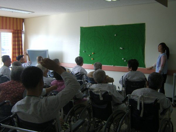 연수생의 진행으로 탁구공 표적 맞추기를 하셨는데 모두 적극적으로 즐겁게 참여 하셨답니다..