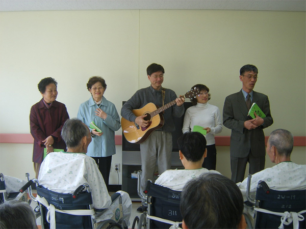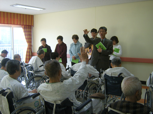 입원해 계신 기독교 신자 분들들 위해 백성교회 목사님의 예배가 있었습니다. 함께 오신 신자분들의 찬양을 들으시며 어르신들이 무척 좋아하셨습니다.감사합니다.