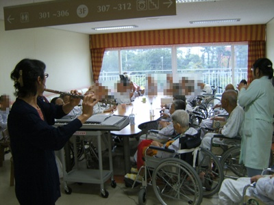 음악요법 시간에 함께 노래에 맞춰 율동도 하며 플롯 연주도 듣는 등 즐거운 시간을 보내셨습니다.
