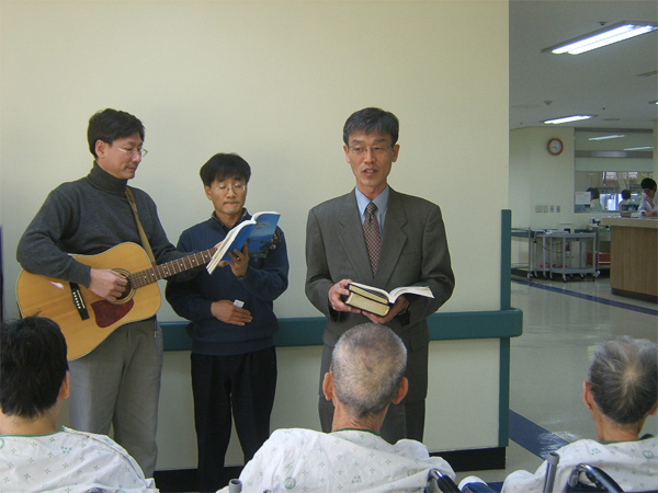 입원해 계신 기독교 신자 분들들 위해 백성교회 목사님의 예배가 있었습니다. 함께 오신 신자분들의 찬양을 들으시며 어르신들이 무척 좋아하셨습니다.