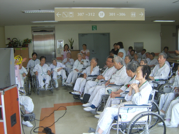 한 간병사님께서 어르신들을 위해 직접 쓴 편지를 낭독하시는 바람에 노래자랑 시간이