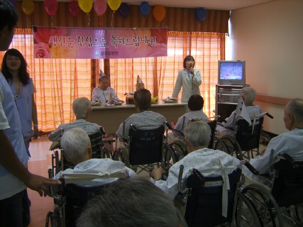 손자, 손녀 같은 학생들의 축하 속에 어르신들이 무척 좋아 하시며 얼굴에 웃음이 끊이지 않으셨습니다.