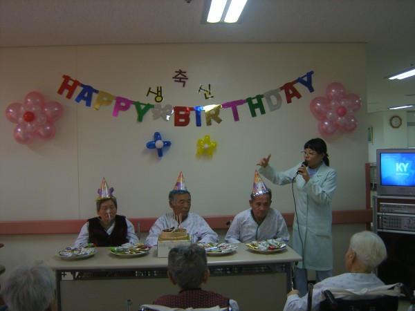 여러 사람들의 축하와 축하 노래 속에 생신을 맞이 하신 어르신들과 생신 파티에 참여 하신 어르신들 모두 무척 즐거워 하셨습니다.