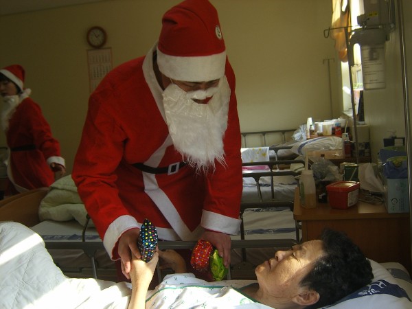 산타가 병실을 돌며 어르신들께 선물을 드리며 함께 사진도 찍고 즐거운 시간을 보냈습니다.