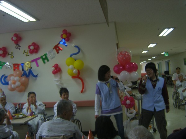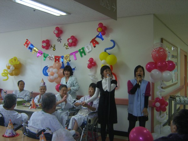 손녀 같은 학생들의 축하 노래 속에 우리 어르신들께서는 무척이나 좋아하셨습니다.