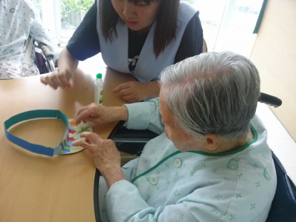 어르신과 학생들이 함께 여름모자인 '선캡'을 만들어 보았습니다~^^
