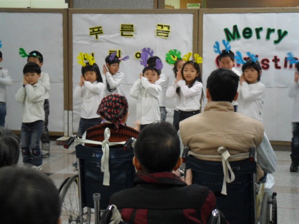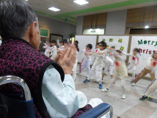 아이들의 율동에 우리 어르신들도 휠체어에서 들썩들썩하며 박수도 치고 손도 흔들며 신나는 시간을 보냈답니다. 참, 오카리나 연주 또한 멋졌답니다.