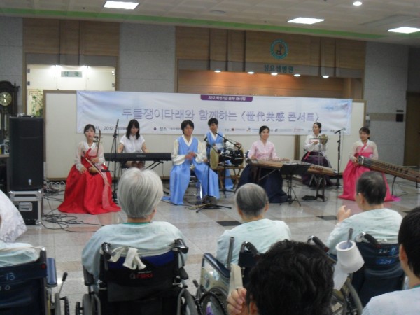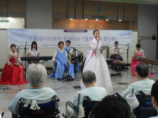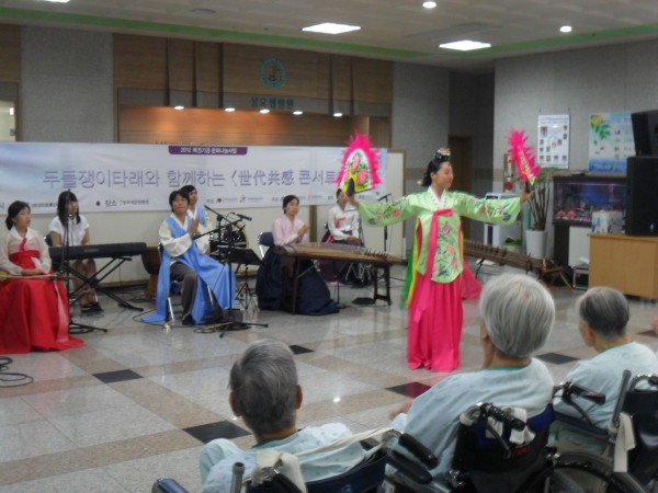 지난 8월 3일 두들쟁이 타래의 전통국악 공연이 있었습니다. 국악기 연주, 한국무용, 민요 등의 다채로운 공연으로 어르신들께서 신나고 흥겨운 시간을 보내실 수 있었습니다. 멋진 공연을 준비해 주신 두들쟁이 타래 공연팀께 진심으로 감사드립니다.