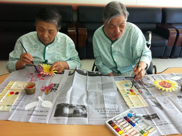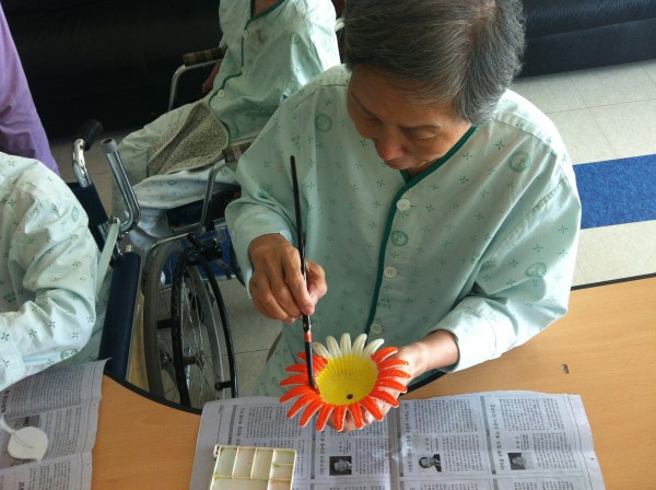 완성된 꽃을 보시고는 만족해하시며 환하게 웃기도 하였습니다.