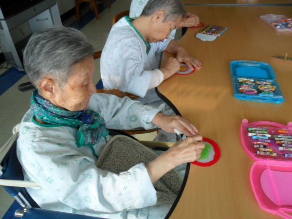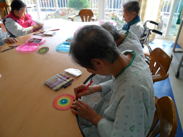 옛날 어린시절 놀이를 회상할 수 있도록 이번 프로그램시간에는 두꺼운 도화지와 성냥을 이용하여 팽이를 만들어보았습니다.