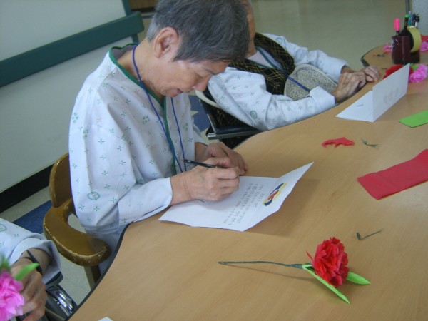 마치 생화처럼 곱고 예쁜 꽃에 어르신들이 무척 좋아하셨습니다.