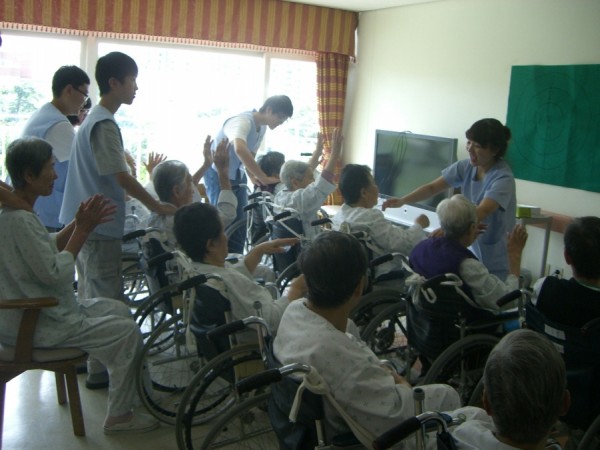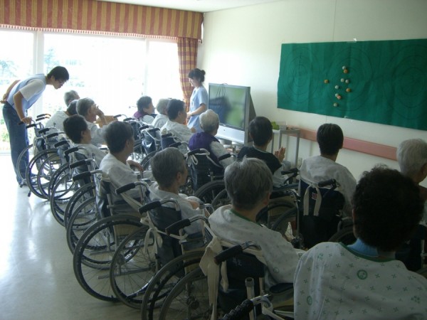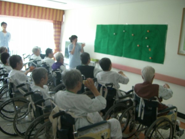 방학을 맞이하여 봉사를 나온 학생들과 어르신들이 함께 하는 탁구공 표적 맞추기