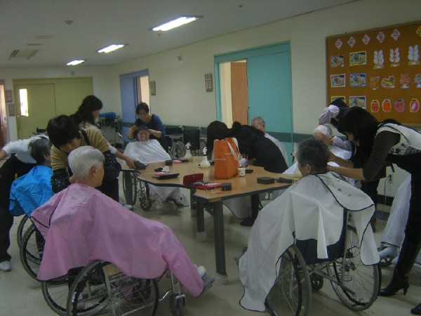 머리미용 봉사자 분들이 어르신들의 머리를 예쁘고 깔끔하게 정리하여 주셨습니다.