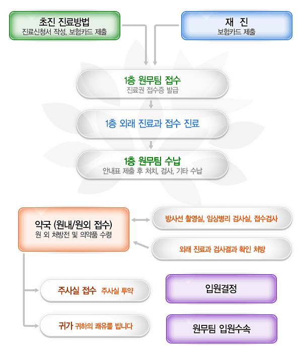 ※ 입원 예약을 하신분은 환자 치료 병원의 소견서 및 기타 탐고 검사 결과지를 준비해 주시기 바랍니다.